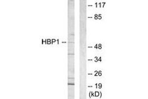 Synthetic peptide from human HBP1 (aa431-480).