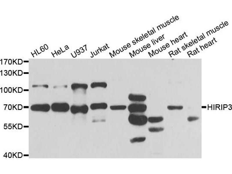 Alle Reaktivitäten für HIRIP3 Antikörper