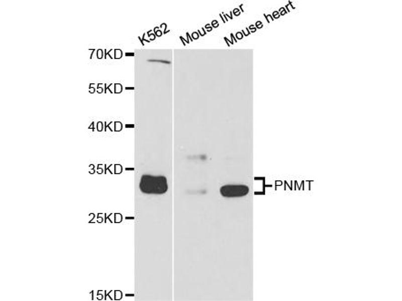 Dieser Kaninchen Polyklonal Antikörper detektiert spezifisch PNMT in WB. Es zeigt Reaktivität gegenüber Proben von Human und Maus.
