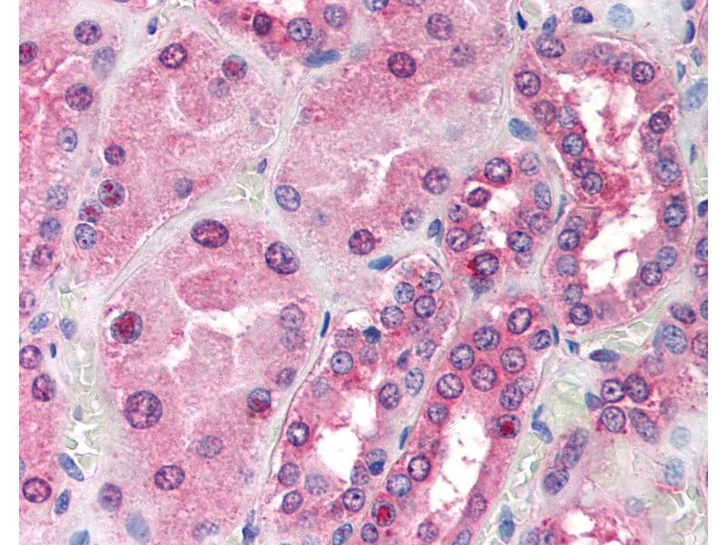 Usage: Immunohistochemistry: This antibody was validated for use in immunohistochemistry on a panel of 21 formalin-fixed, paraffin-embedded (FFPE) human tissues after heat induced antigen retrieval in pH 6.0 citrate buffer. After incubation with the primary antibody, slides were incubated with biotinylated secondary antibody, followed by alkaline phosphatase-streptavidin and chromogen. The stained slides were evaluated by a pathologist to confirm staining specificity. The optimal working concentration for this antibody was determined to be 20 μg/mL. -