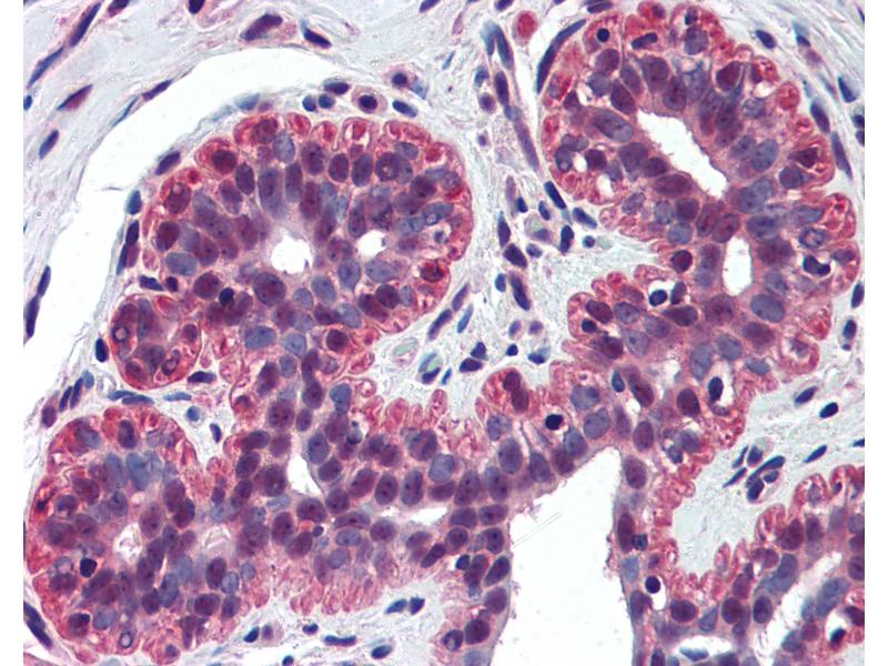 Usage: Immunohistochemistry: This antibody was validated for use in immunohistochemistry on a panel of 21 formalin-fixed, paraffin-embedded (FFPE) human tissues after heat induced antigen retrieval in pH 6.0 citrate buffer. After incubation with the primary antibody, slides were incubated with biotinylated secondary antibody, followed by alkaline phosphatase-streptavidin and chromogen. The stained slides were evaluated by a pathologist to confirm staining specificity. The optimal working concentration for this antibody was determined to be 5 μg/mL. -