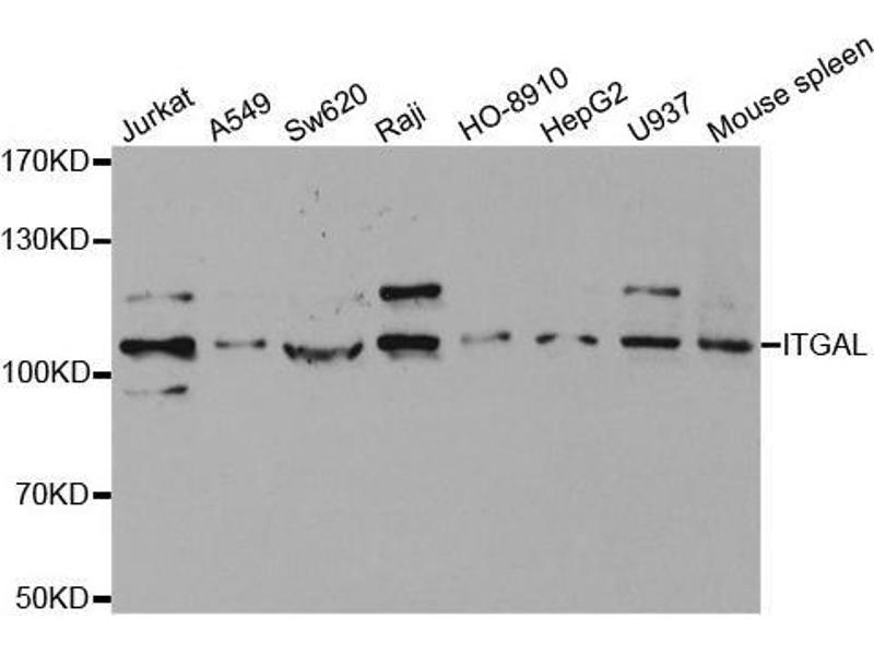 ITGAL encodes the integrin alpha L chain. Integrins are heterodimeric integral membrane proteins composed of an alpha chain and a beta chain. This I-domain containing alpha integrin combines with the beta 2 chain (ITGB2) to form the integrin lymphocyte function-associated antigen-1 (LFA-1), which is expressed on all leukocytes. LFA-1 plays a central role in leukocyte intercellular adhesion through interactions with its ligands, ICAMs 1-3 (intercellular adhesion molecules 1 through 3), and also functions in lymphocyte costimulatory signaling. Two transcript variants encoding different isoforms have been found for this gene.,CD11A,LFA-1,LFA1A,CD11a,ITGAL,Signal Transduction,PI3K-Akt Signaling Pathway,MAPK-Erk Signaling Pathway,Cell Biology & Developmental Biology,Cell Adhesion,Cytoskeleton,Immunology & Inflammation,CD markers,T Cell Receptor Signaling Pathway,Stem Cells,Hematopoietic Progenitors,ITGAL