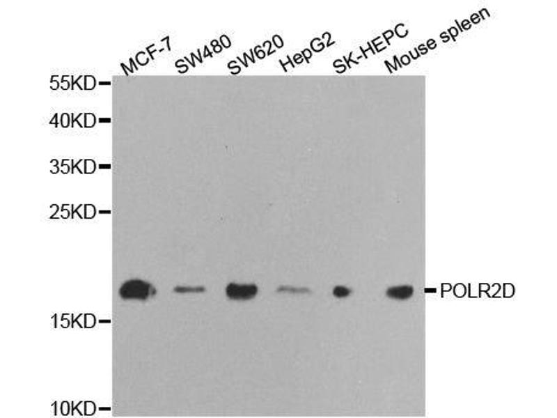 Der Kaninchen Polyklonal anti-POLR2D Antikörper (ABIN3015637) detektiert spezifisch POLR2D in WB, IF und IP.