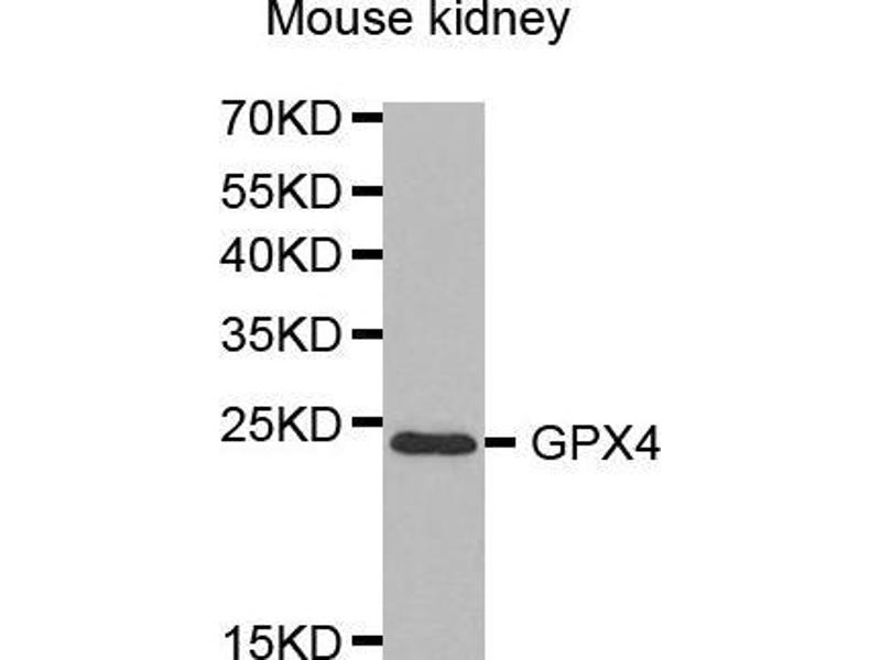 - The protein encoded by this gene belongs to the glutathione peroxidase family, members of which catalyze the reduction of hydrogen peroxide, organic hydroperoxides and lipid hydroperoxides, and thereby protect cells against oxidative damage. Several isozymes of this gene family exist in vertebrates, which vary in cellular location and substrate specificity. This isozyme has a high preference for lipid hydroperoxides and protects cells against membrane lipid peroxidation and cell death. It is also required for normal sperm development, thus, it has been identified as a 'moonlighting' protein because of its ability to serve dual functions as a peroxidase, as well as a structural protein in mature spermatozoa. Mutations in this gene are associated with Sedaghatian type of spondylometaphyseal dysplasia (SMDS). This isozyme is also a selenoprotein, containing the rare amino acid selenocysteine (Sec) at its active site. Sec is encoded by the UGA codon, which normally signals translation termination. The 3' UTRs of selenoprotein mRNAs contain a conserved stem-loop structure, designated the Sec insertion sequence (SECIS) element, that is necessary for the recognition of UGA as a Sec codon, rather than as a stop signal. Alternatively spliced transcript variants have been found for this gene.,GPX4,GPx-4,GSHPx-4,MCSP,PHGPx,SMDS,snGPx,snPHGPx,Cancer,Signal Transduction,Endocrine & Metabolism,Mitochondrial metabolism,Mitochondrial markers,GPX4