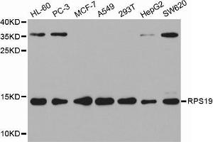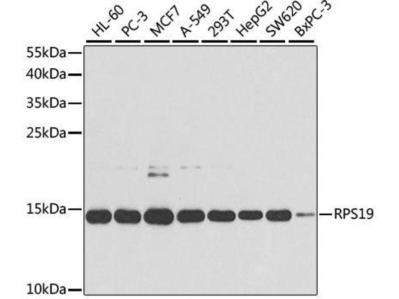 Ribosomes, the organelles that catalyze protein synthesis, consist of a small 40S subunit and a large 60S subunit. Together these subunits are composed of 4 RNA species and approximately 80 structurally distinct proteins. This gene encodes a ribosomal protein that is a component of the 40S subunit. The protein belongs to the S19E family of ribosomal proteins. It is located in the cytoplasm. Mutations in this gene cause Diamond-Blackfan anemia (DBA), a constitutional erythroblastopenia characterized by absent or decreased erythroid precursors, in a subset of patients. This suggests a possible extra-ribosomal function for this gene in erythropoietic differentiation and proliferation, in addition to its ribosomal function. Higher expression levels of this gene in some primary colon carcinomas compared to matched normal colon tissues has been observed. As is typical for genes encoding ribosomal proteins, there are multiple processed pseudogenes of this gene dispersed through the genome.,RPS19,DBA,DBA1,S19,Epigenetics & Nuclear Signaling,RPS19