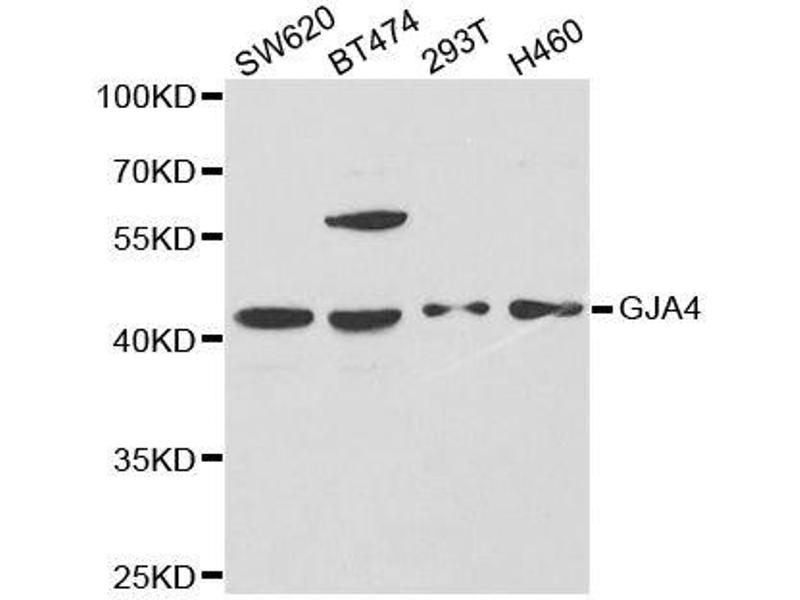Der Kaninchen Polyklonal anti-GJA4 Antikörper wird verwendet zum Nachweis von GJA4 in Proben von Human. Er wurde validiert für WB.