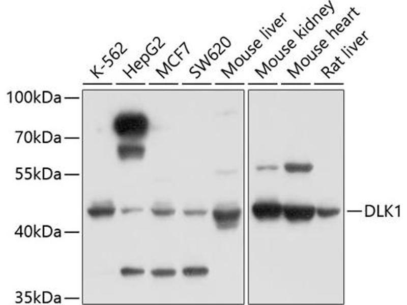 This gene encodes a transmembrane protein that contains multiple epidermal growth factor repeats that functions as a regulator of cell growth. The encoded protein is involved in the differentiation of several cell types including adipocytes. This gene is located in a region of chromosome 14 frequently showing unparental disomy, and is imprinted and expressed from the paternal allele. A single nucleotide variant in this gene is associated with child and adolescent obesity and shows polar overdominance, where heterozygotes carrying an active paternal allele express the phenotype, while mutant homozygotes are normal.,DLK1,DLK,DLK-1,Delta1,FA1,PREF1,Pref-1,ZOG,pG2,Epigenetics & Nuclear Signaling,Chromatin Modifying Enzymes,Phosphorylation,Signal Transduction,Endocrine & Metabolism,Neuroscience,Calcium Signaling,Stem Cells,Hematopoietic Progenitors,DLK1