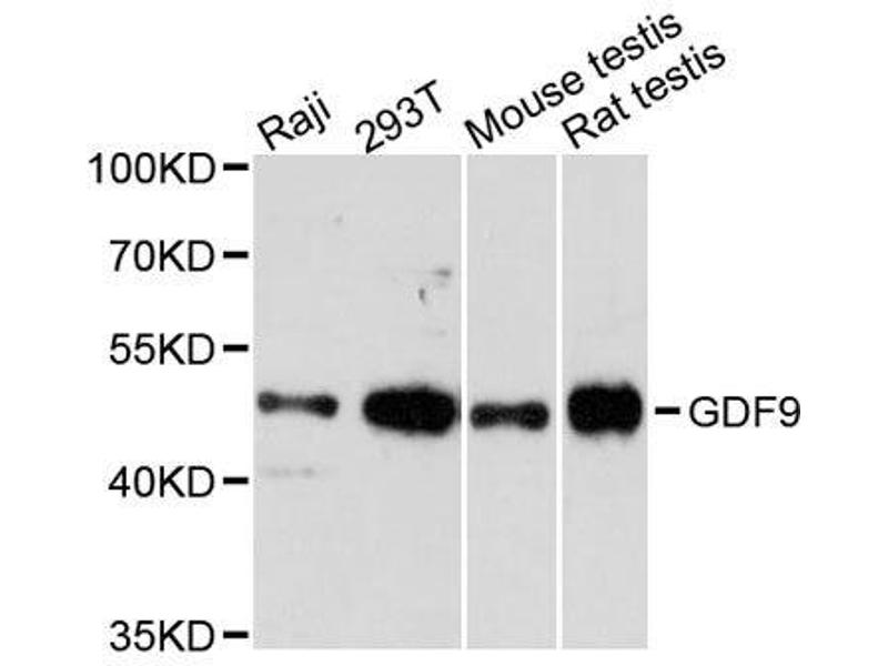 This gene encodes a secreted ligand of the TGF-beta (transforming growth factor-beta) superfamily of proteins. Ligands of this family bind various TGF-beta receptors leading to recruitment and activation of SMAD family transcription factors that regulate gene expression. The encoded preproprotein is proteolytically processed to generate each subunit of the disulfide-linked homodimer. This protein regulates ovarian function. Reduced expression of this gene may be associated with polycystic ovary syndrome and mutations in this gene may be more common in mothers of dizygotic twins.,GDF9,Signal Transduction,Cell Biology & Developmental Biology,Growth factor,Immunology & Inflammation,Cytokines,Stem Cells,Cardiovascular,Angiogenesis,GDF9