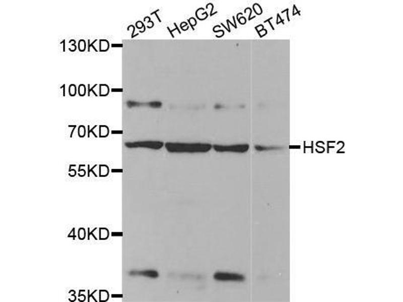 - The protein encoded by this gene belongs to the HSF family of transcription factors that bind specifically to the heat-shock promoter element and activate transcription. Heat shock transcription factors activate heat-shock response genes under conditions of heat or other stresses. Alternatively spliced transcript variants encoding different isoforms have been found for this gene.,HSF2,HSF 2,HSTF 2,HSTF2,Epigenetics & Nuclear Signaling,Transcription Factors,HSF2