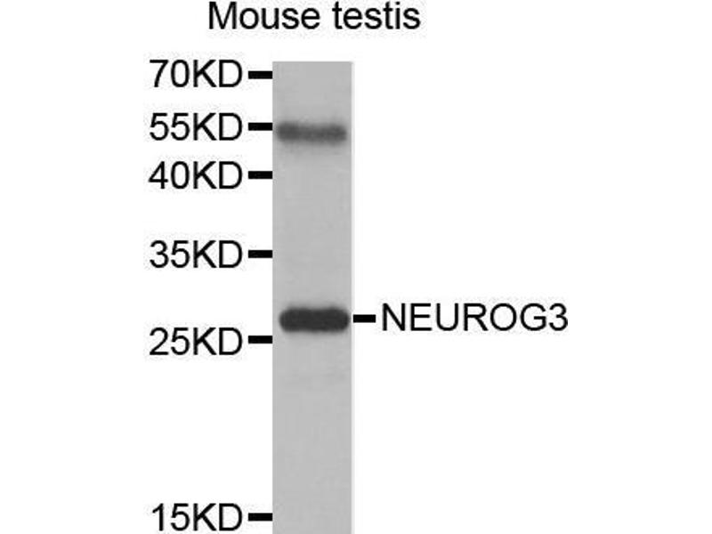 The protein encoded by this gene is a basic helix-loop-helix (bHLH) transcription factor involved in neurogenesis. The encoded protein likely acts as a heterodimer with another bHLH protein. Defects in this gene are a cause of congenital malabsorptive diarrhea 4 (DIAR4).,NEUROG3,Atoh5,Math4B,NGN-3,bHLHa7,ngn3,Epigenetics & Nuclear Signaling,Transcription Factors,Neuroscience,Stem Cells,NEUROG3
