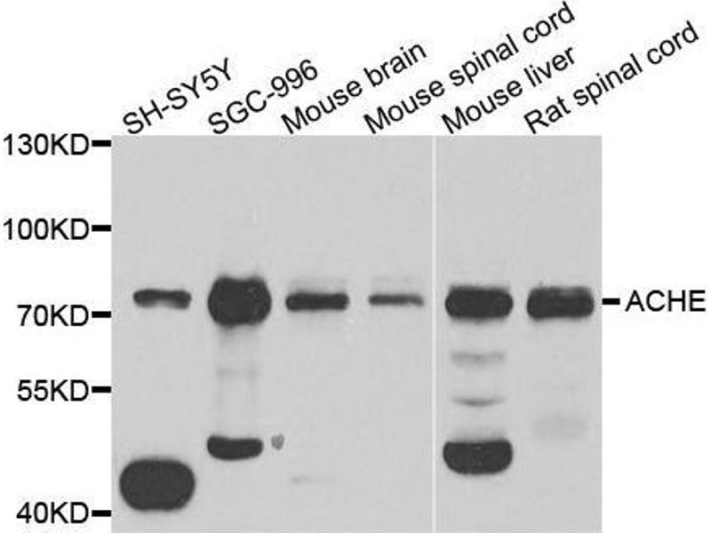 Der Kaninchen Polyklonal anti-Acetylcholinesterase Antikörper wird verwendet zum Nachweis von Acetylcholinesterase in Proben von Human. Er wurde validiert für WB und IF.