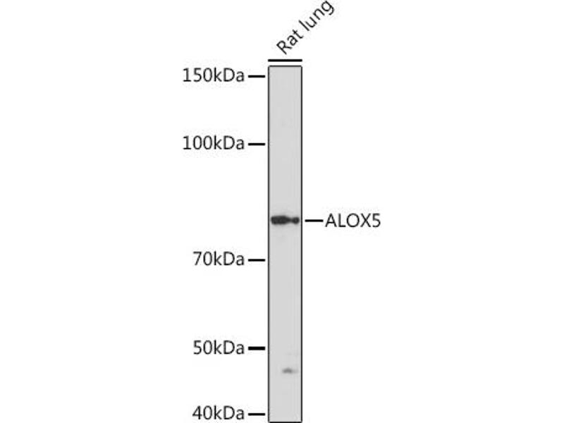 This gene encodes a member of the lipoxygenase gene family and plays a dual role in the synthesis of leukotrienes from arachidonic acid. The encoded protein, which is expressed specifically in bone marrow-derived cells, catalyzes the conversion of arachidonic acid to 5(S)-hydroperoxy-6-trans-8,11,14-cis-eicosatetraenoic acid, and further to the allylic epoxide 5(S)-trans-7,9-trans-11,14-cis-eicosatetrenoic acid (leukotriene A4). Leukotrienes are important mediators of a number of inflammatory and allergic conditions. Mutations in the promoter region of this gene lead to a diminished response to antileukotriene drugs used in the treatment of asthma and may also be associated with atherosclerosis and several cancers. Alternatively spliced transcript variants encoding different isoforms have been found for this gene. [provided by RefSeq, Jan 2012],5-LO, 5-LOX, 5LPG, LOG5,Cancer,Cardiovascular,Cardiovascular diseases,Cardiovascular diseases_Heart disease,Endocrine & Metabolism,Heart,Lipid Metabolism,Protein phosphorylation,Signal Transduction,ALOX5