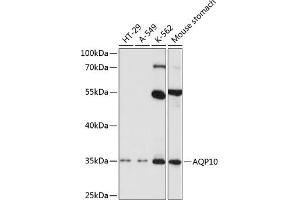 This gene encodes a member of the aquaglyceroporin family of integral membrane proteins. Members of this family function as water-permeable channels in the epithelia of organs that absorb and excrete water. This protein was shown to function as a water-selective channel, and could also permeate neutral solutes such as glycerol and urea.,AQP10,AQPA_HUMAN,Cancer,Signal Transduction,Endocrine & Metabolism,AQP10