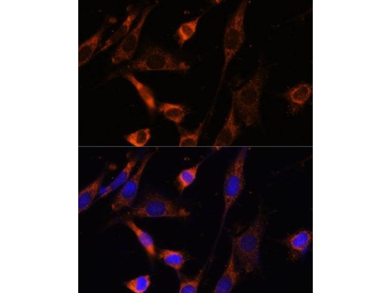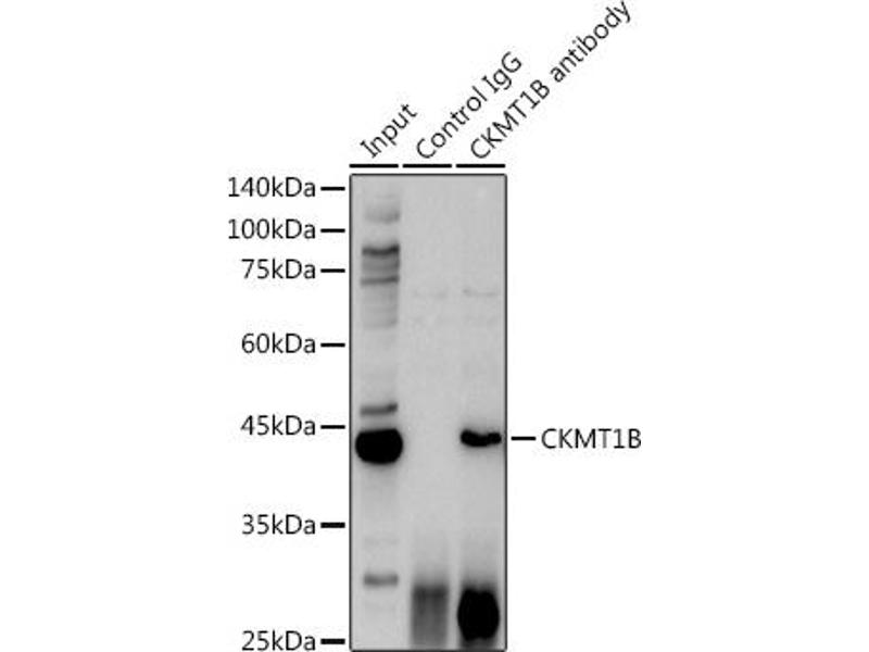 Mitochondrial creatine (MtCK) kinase is responsible for the transfer of high energy phosphate from mitochondria to the cytosolic carrier, creatine. It belongs to the creatine kinase isoenzyme family. It exists as two isoenzymes, sarcomeric MtCK and ubiquitous MtCK, encoded by separate genes. Mitochondrial creatine kinase occurs in two different oligomeric forms: dimers and octamers, in contrast to the exclusively dimeric cytosolic creatine kinase isoenzymes. Many malignant cancers with poor prognosis have shown overexpression of ubiquitous mitochondrial creatine kinase, this may be related to high energy turnover and failure to eliminate cancer cells via apoptosis. Ubiquitous mitochondrial creatine kinase has 80 % homology with the coding exons of sarcomeric mitochondrial creatine kinase. Two genes located near each other on chromosome 15 have been identified which encode identical mitochondrial creatine kinase proteins.,CKMT1B,CKMT,CKMT1,UMTCK,Signal Transduction,Kinase,CKMT1B