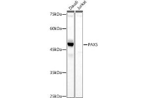 This gene encodes a member of the paired box (PAX) family of transcription factors. The central feature of this gene family is a novel, highly conserved DNA-binding motif, known as the paired box. Paired box transcription factors are important regulators in early development, and alterations in the expression of their genes are thought to contribute to neoplastic transformation. This gene encodes the B-cell lineage specific activator protein that is expressed at early, but not late stages of B-cell differentiation. Its expression has also been detected in developing CNS and testis and so the encoded protein may also play a role in neural development and spermatogenesis. This gene is located at 9p13, which is involved in t(9,14)(p13,q32) translocations recurring in small lymphocytic lymphomas of the plasmacytoid subtype, and in derived large-cell lymphomas. This translocation brings the potent E-mu enhancer of the IgH gene into close proximity of the PAX5 promoter, suggesting that the deregulation of transcription of this gene contributes to the pathogenesis of these lymphomas. Alternative splicing results in multiple transcript variants encoding different isoforms.,PAX5,ALL3,BSAP,Epigenetics & Nuclear Signaling,Transcription Factors,Neuroscience,PAX5
