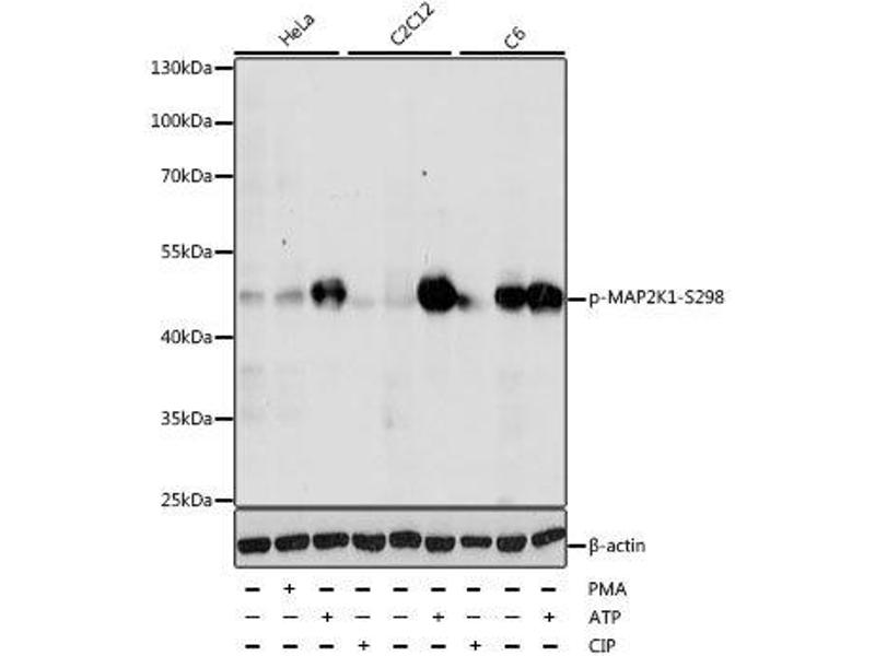 The protein encoded by this gene is a member of the dual specificity protein kinase family, which acts as a mitogen-activated protein (MAP) kinase kinase. MAP kinases, also known as extracellular signal-regulated kinases (ERKs), act as an integration point for multiple biochemical signals. This protein kinase lies upstream of MAP kinases and stimulates the enzymatic activity of MAP kinases upon wide variety of extra- and intracellular signals. As an essential component of MAP kinase signal transduction pathway, this kinase is involved in many cellular processes such as proliferation, differentiation, transcription regulation and development.,CFC3,MAPKK1,MEK1,MKK1,PRKMK1,MAP2K1,Signal Transduction,G protein signaling,G2/M DNA Damage Checkpoint,Kinase,Tyrosine kinases,ErbB-HER Signaling Pathway,MAPK-Erk Signaling Pathway,Cell Biology & Developmental Biology,Cytoskeleton,Actins,ESC Pluripotency and Differentiation,Endocrine & Metabolism,Insulin Receptor Signaling Pathway,Warburg Effect,Immunology & Inflammation,B Cell Receptor Signaling Pathway,T Cell Receptor Signaling Pathway,IL-6 Receptor Signaling Pathway,Neuroscience,Neurodegenerative Diseases,Cardiovascular,Angiogenesis,Protein phosphorylation,MAP2K1
