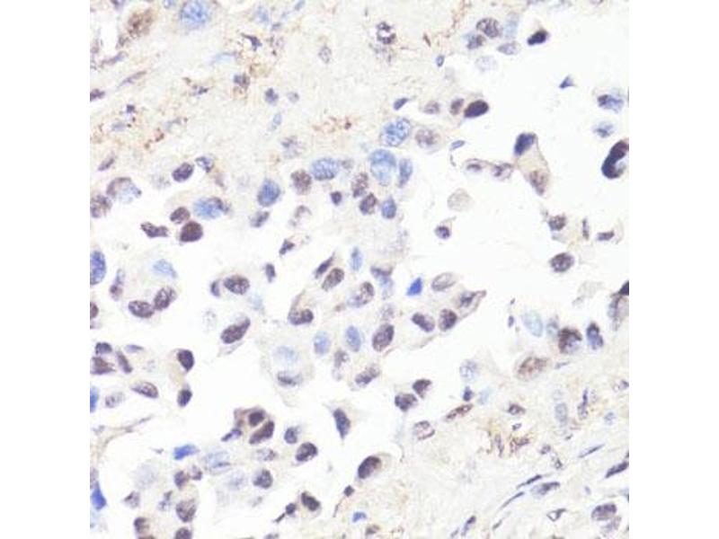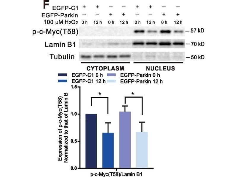 The protein encoded by this gene is a multifunctional, nuclear phosphoprotein that plays a role in cell cycle progression, apoptosis and cellular transformation. It functions as a transcription factor that regulates transcription of specific target genes. Mutations, overexpression, rearrangement and translocation of this gene have been associated with a variety of hematopoietic tumors, leukemias and lymphomas, including Burkitt lymphoma. There is evidence to show that alternative translation initiations from an upstream, in-frame non-AUG (CUG) and a downstream AUG start site result in the production of two isoforms with distinct N-termini. The synthesis of non-AUG initiated protein is suppressed in Burkitt's lymphomas, suggesting its importance in the normal function of this gene.,MRTL,MYCC,bHLHe39,c-Myc,MYC,Epigenetics & Nuclear Signaling,Transcription Factors,Cancer,Tumor biomarkers,Signal Transduction,MAPK-Erk Signaling Pathway,MAPK-P38 Signaling Pathway,Cell Biology & Developmental Biology,Apoptosis,Cell Cycle,Cell differentiation,G1/S Checkpoint,Hedgehog Signaling Pathway,Notch Signaling Pathway,Endocrine & Metabolism,Warburg Effect,Immunology & Inflammation,IL-6 Receptor Signaling Pathway,Stem Cells,Protein phosphorylation,MYC