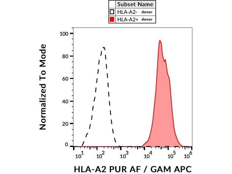 Der Maus Monoklonal anti-HLA-A2 Antikörper (Klon BB7-2) (ABIN301995) detektiert spezifisch HLA-A2 in FACS und IP.
