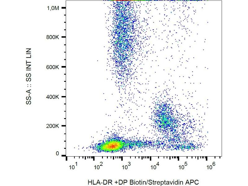 The antibody MEM-136 recognizes a common extracellular epitope on beta-chain of human HLA-DR and HLA-DP. It reacts with alpha/beta dimer as well as with dissociated beta-subunit. DR and DP are the isotypes of human MHC Class II molecules expressed on antigen-presenting cells (APC, dendritic cells, B lymphocytes, monocytes, macrophages).