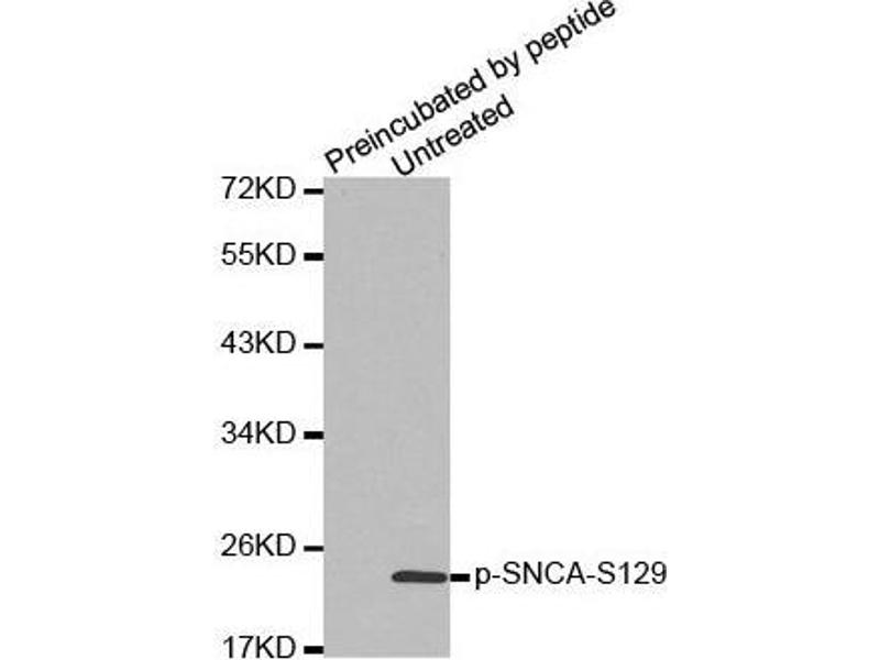 A phospho specific peptide corresponding to residues surrounding S129 of human alpha-Synuclein