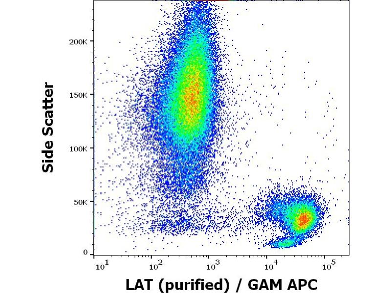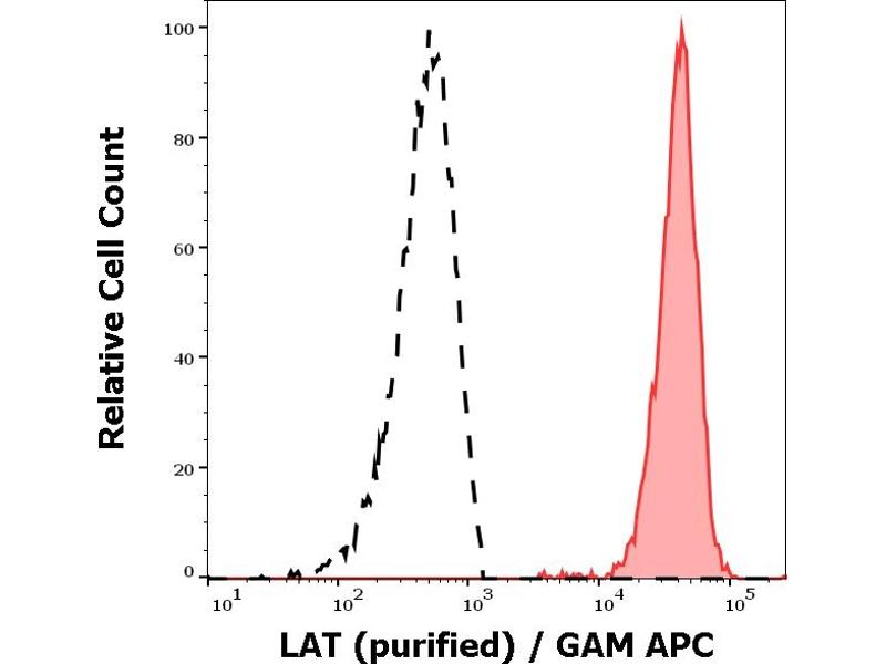 Immunoprecipitation: Tyrosine-phosphorylated form of LAT is not optimally recognized. Flow cytometry: Recommended dilution: 1-4 μg/mL, intracellular staining. Tyrosine-phosphorylated form of LAT is not optimally recognized. Western blotting: Recommended dilution: 1-2 μg/mL.