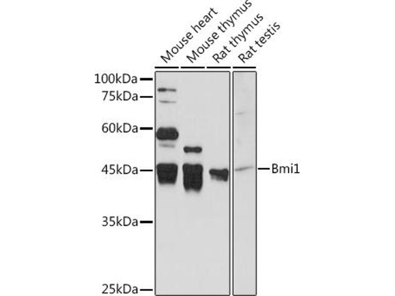 This gene encodes a ring finger protein that is major component of the polycomb group complex 1 (PRC1). This complex functions through chromatin remodeling as an essential epigenetic repressor of multiple regulatory genes involved in embryonic development and self-renewal in somatic stem cells. This protein also plays a central role in DNA damage repair. This gene is an oncogene and aberrant expression is associated with numerous cancers and is associated with resistance to certain chemotherapies. A pseudogene of this gene is found on chromosome X. Read-through transcription also exists between this gene and the upstream COMM domain containing 3 (COMMD3) gene.,BMI1,FLVI2/BMI1,PCGF4,RNF51,flvi-2/bmi-1,Bmi1,Epigenetics & Nuclear Signaling,Cell Biology & Developmental Biology,Cell Cycle,G1/S Checkpoint,BMI1