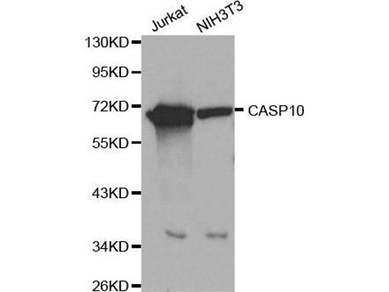 This gene encodes a protein which is a member of the cysteine-aspartic acid protease (caspase) family. Sequential activation of caspases plays a central role in the execution-phase of cell apoptosis. Caspases exist as inactive proenzymes which undergo proteolytic processing at conserved aspartic residues to produce two subunits, large and small, that dimerize to form the active enzyme. This protein cleaves and activates caspases 3 and 7, and the protein itself is processed by caspase 8. Mutations in this gene are associated with type IIA autoimmune lymphoproliferative syndrome, non-Hodgkin lymphoma and gastric cancer. Alternatively spliced transcript variants encoding different isoforms have been described for this gene.,CASP10,ALPS2,FLICE2,MCH4,caspase-10,Cancer,Invasion and Metastasis,Signal Transduction,ErbB-HER Signaling Pathway,Cell Biology & Developmental Biology,Apoptosis,Caspases,Mitochondrial Control of Apoptosis,Inhibition of Apoptosis,Ubiquitin,Death Receptor Signaling Pathway,Endocrine & Metabolism,Immunology & Inflammation,CASP10