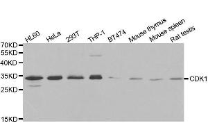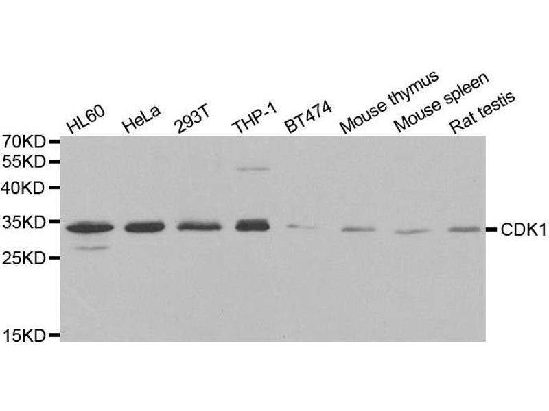The protein encoded by this gene is a member of the Ser/Thr protein kinase family. This protein is a catalytic subunit of the highly conserved protein kinase complex known as M-phase promoting factor (MPF), which is essential for G1/S and G2/M phase transitions of eukaryotic cell cycle. Mitotic cyclins stably associate with this protein and function as regulatory subunits. The kinase activity of this protein is controlled by cyclin accumulation and destruction through the cell cycle. The phosphorylation and dephosphorylation of this protein also play important regulatory roles in cell cycle control. Alternatively spliced transcript variants encoding different isoforms have been found for this gene.,CDK1,CDC2,CDC28A,P34CDC2,Epigenetics & Nuclear Signaling,Signal Transduction,G protein signaling,Kinase,Serine/threonine kinases,ErbB-HER Signaling Pathway,Cell Biology & Developmental Biology,Apoptosis,Cell Cycle,Centrosome,G2/M DNA Damage Checkpoint,Microtubules,Immunology & Inflammation,Neuroscience,Neurodegenerative Diseases,CDK1