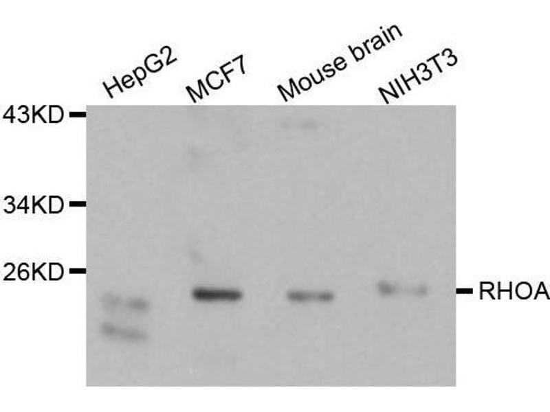 - A synthetic peptide corresponding to a sequence within amino acids 100 to the C-terminus of human RhoA (NP_001655.1).