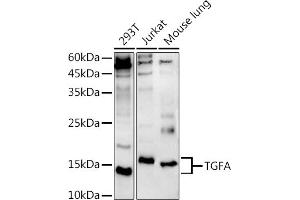 This gene encodes a growth factor that is a ligand for the epidermal growth factor receptor, which activates a signaling pathway for cell proliferation, differentiation and development. This protein may act as either a transmembrane-bound ligand or a soluble ligand. This gene has been associated with many types of cancers, and it may also be involved in some cases of cleft lip/palate. Alternatively spliced transcript variants encoding different isoforms have been found for this gene.,TGFA,TFGA,Cancer,Invasion and Metastasis,Signal Transduction,ErbB-HER Signaling Pathway,Cell Biology & Developmental Biology,Apoptosis,Growth factor,Immunology & Inflammation,NF-kB Signaling Pathway,Cardiovascular,Angiogenesis,Angiogenic growth factors,TGFA
