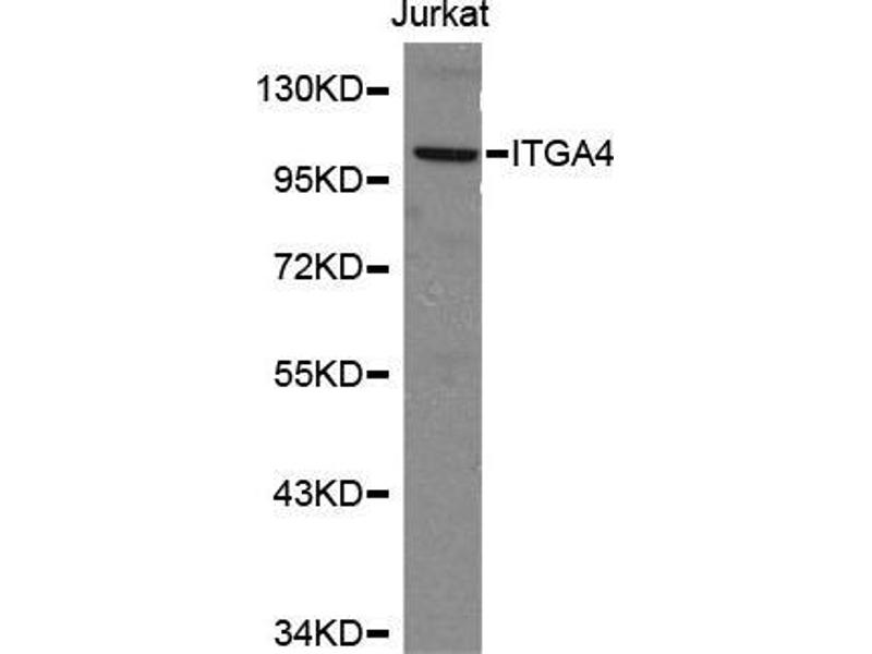 The gene encodes a member of the integrin alpha chain family of proteins. Integrins are heterodimeric integral membrane proteins composed of an alpha chain and a beta chain that function in cell surface adhesion and signaling. The encoded preproprotein is proteolytically processed to generate light and heavy chains that comprise the alpha 4 subunit. This subunit associates with a beta 1 or beta 7 subunit to form an integrin that may play a role in cell motility and migration. This integrin is a therapeutic target for the treatment of multiple sclerosis, Crohn's disease and inflammatory bowel disease. Alternative splicing results in multiple transcript variants.,ITGA4,CD49D,IA4,Signal Transduction,G protein signaling,G2/M DNA Damage Checkpoint,PI3K-Akt Signaling Pathway,MAPK-Erk Signaling Pathway,Cell Biology & Developmental Biology,Cell Adhesion,Cytoskeleton,Immunology & Inflammation,CD markers,Stem Cells,Neural Stem Cells,ITGA4