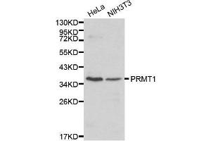 - This gene encodes a member of the protein arginine N-methyltransferase (PRMT) family. Post-translational modification of target proteins by PRMTs plays an important regulatory role in many biological processes, whereby PRMTs methylate arginine residues by transferring methyl groups from S-adenosyl-L-methionine to terminal guanidino nitrogen atoms. The encoded protein is a type I PRMT and is responsible for the majority of cellular arginine methylation activity. Increased expression of this gene may play a role in many types of cancer. Alternatively spliced transcript variants encoding multiple isoforms have been observed for this gene, and a pseudogene of this gene is located on the long arm of chromosome 5.,PRMT1,ANM1,HCP1,HRMT1L2,IR1B4,Epigenetics & Nuclear Signaling,Chromatin Modifying Enzymes,Methylation,Nuclear Receptor Signaling,Cancer,Tumor suppressors,p53 pathway,Cell Biology & Developmental Biology,Cell Cycle,Cell cycle inhibitors,PRMT1