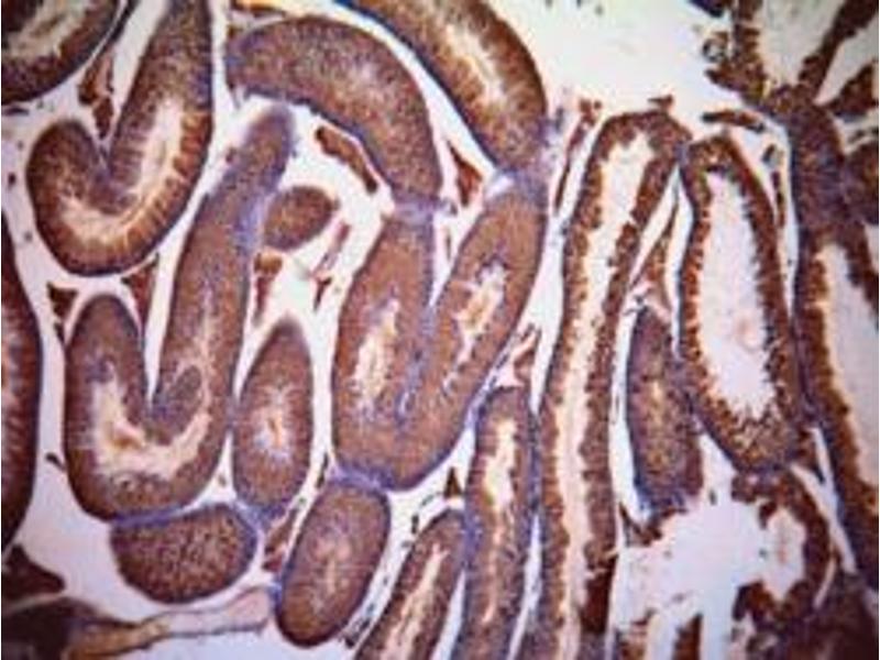 Immunohistochemistry: In paraffin embedded Mouse Testis shows strong signal in seminiferous tubules of Mouse Tesits. Recommended concentration, 1-2 μg/mL. This antibody has been successfully used in IHC on Mouse, PMID: 36464740.