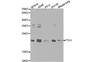 This gene encodes the heavy subunit of ferritin, the major intracellular iron storage protein in prokaryotes and eukaryotes. It is composed of 24 subunits of the heavy and light ferritin chains. Variation in ferritin subunit composition may affect the rates of iron uptake and release in different tissues. A major function of ferritin is the storage of iron in a soluble and nontoxic state. Defects in ferritin proteins are associated with several neurodegenerative diseases. This gene has multiple pseudogenes. Several alternatively spliced transcript variants have been observed, but their biological validity has not been determined.,FHC,FTH,FTHL6,HFE5,PIG15,PLIF,Ferritin,FTH1,Cancer,Signal Transduction,Endocrine & Metabolism,Mitochondrial metabolism,Mitochondrial markers,Neuroscience,Neurodegenerative Diseases,Amyloid Plaque and Neurofibrillary Tangle Formation in Alzheimer's Disease,Cardiovascular,Blood,Serum Proteins,FTH1