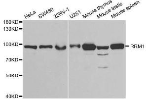 This gene encodes the large and catalytic subunit of ribonucleotide reductase, an enzyme essential for the conversion of ribonucleotides into deoxyribonucleotides. A pool of available deoxyribonucleotides is important for DNA replication during S phase of the cell cycle as well as multiple DNA repair processes. Alternative splicing results in multiple transcript variants.,RRM1,R1,RIR1,RR1,Epigenetics & Nuclear Signaling,RRM1