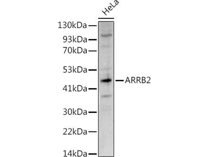 - A synthetic peptide corresponding to a sequence within amino acids 300-400 of human ARRB2 (NP_004304.1).