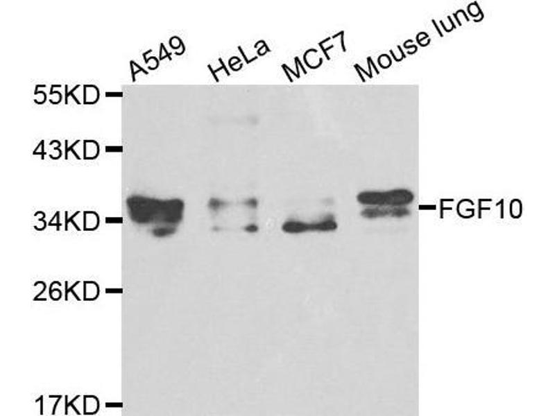 Der Kaninchen Polyklonal Anti-FGF10 Antikörper wurde für WB validiert. Er ist geeignet, FGF10 in Proben von Human zu detektieren. Es ist 1 Publikation verfügbar.