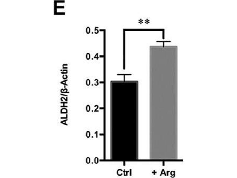 This protein belongs to the aldehyde dehydrogenase family of proteins. Aldehyde dehydrogenase is the second enzyme of the major oxidative pathway of alcohol metabolism. Two major liver isoforms of aldehyde dehydrogenase, cytosolic and mitochondrial, can be distinguished by their electrophoretic mobilities, kinetic properties, and subcellular localizations. Most Caucasians have two major isozymes, while approximately 50 % of East Asians have the cytosolic isozyme but not the mitochondrial isozyme. A remarkably higher frequency of acute alcohol intoxication among East Asians than among Caucasians could be related to the absence of a catalytically active form of the mitochondrial isozyme. The increased exposure to acetaldehyde in individuals with the catalytically inactive form may also confer greater susceptibility to many types of cancer. This gene encodes a mitochondrial isoform, which has a low Km for acetaldehydes, and is localized in mitochondrial matrix. Alternative splicing results in multiple transcript variants encoding distinct isoforms.,ALDH2,ALDH-E2,ALDHI,ALDM,Cancer,Signal Transduction,Endocrine & Metabolism,Mitochondrial metabolism,Mitochondrial markers,Cardiovascular,Heart,Cardiac metabolism,ALDH2