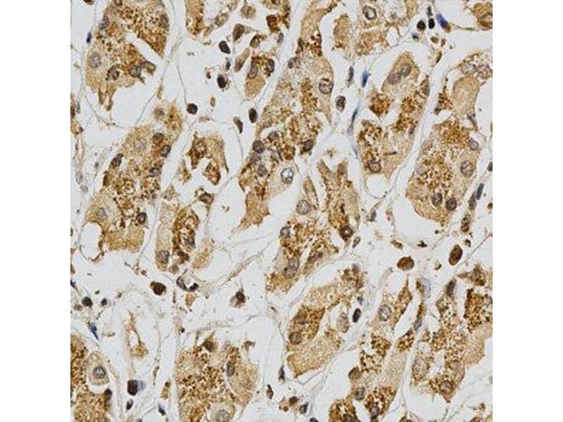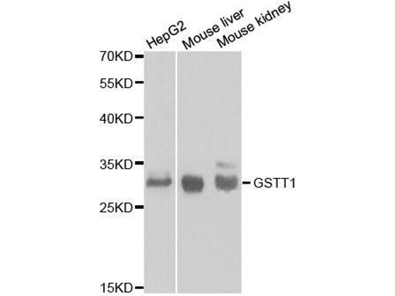 The protein encoded by this gene, glutathione S-transferase (GST) theta 1 (GSTT1), is a member of a superfamily of proteins that catalyze the conjugation of reduced glutathione to a variety of electrophilic and hydrophobic compounds. Human GSTs can be divided into five main classes: alpha, mu, pi, theta, and zeta. The theta class includes GSTT1, GSTT2, and GSTT2B. GSTT1 and GSTT2/GSTT2B share 55 % amino acid sequence identity and may play a role in human carcinogenesis. The GSTT1 gene is haplotype-specific and is absent from 38 % of the population. Alternative splicing of this gene results in multiple transcript variants.,GSTT1,Cell Biology & Developmental Biology,Endocrine & Metabolism,GSTT1