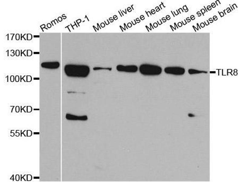 The protein encoded by this gene is a member of the Toll-like receptor (TLR) family which plays a fundamental role in pathogen recognition and activation of innate immunity. TLRs are highly conserved from Drosophila to humans and share structural and functional similarities. They recognize pathogen-associated molecular patterns (PAMPs) that are expressed on infectious agents, and mediate the production of cytokines necessary for the development of effective immunity. The various TLRs exhibit different patterns of expression. This gene is predominantly expressed in lung and peripheral blood leukocytes, and lies in close proximity to another family member, TLR7, on chromosome X.,TLR8,CD288,TLR8,Immunology & Inflammation,CD markers,NF-kB Signaling Pathway,Toll-like Receptor Signaling Pathway,Cell Intrinsic Innate Immunity Signaling Pathway,TLR Signaling,TLR8