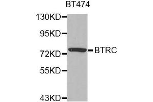 This gene encodes a member of the F-box protein family which is characterized by an approximately 40 amino acid motif, the F-box. The F-box proteins constitute one of the four subunits of ubiquitin protein ligase complex called SCFs (SKP1-cullin-F-box), which function in phosphorylation-dependent ubiquitination. The F-box proteins are divided into 3 classes: Fbws containing WD-40 domains, Fbls containing leucine-rich repeats, and Fbxs containing either different protein-protein interaction modules or no recognizable motifs. The protein encoded by this gene belongs to the Fbws class, in addition to an F-box, this protein contains multiple WD-40 repeats. The encoded protein mediates degradation of CD4 via its interaction with HIV-1 Vpu. It has also been shown to ubiquitinate phosphorylated NFKBIA (nuclear factor of kappa light polypeptide gene enhancer in B-cells inhibitor, alpha), targeting it for degradation and thus activating nuclear factor kappa-B. Alternatively spliced transcript variants have been described. A related pseudogene exists in chromosome 6.,BTRC,BETA-TRCP,FBW1A,FBXW1,FBXW1A,FWD1,bTrCP,bTrCP1,betaTrCP,Beta-TRCP,Signal Transduction,Cell Biology & Developmental Biology,Cell Cycle,Centrosome,Ubiquitin,Ubiquitin-Proteasome Signaling Pathway,Hedgehog Signaling Pathway,Wnt/β-Catenin Signaling Pathway,Immunology & Inflammation,NF-kB Signaling Pathway,Neuroscience,BTRC