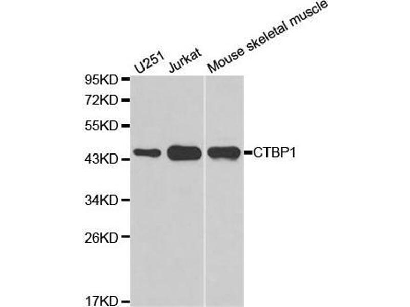 Der Kaninchen Polyklonal anti-CTBP1 Antikörper (ABIN3022422) detektiert spezifisch CTBP1 in WB.
