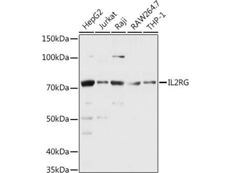 Der Kaninchen Polyklonal anti-IL2RG Antikörper (ABIN3022612) detektiert spezifisch IL2RG in WB.