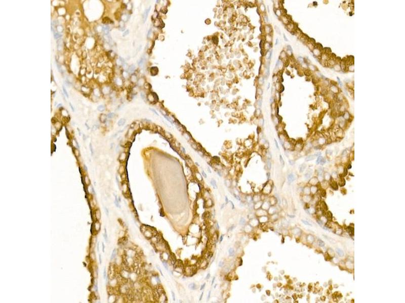 This gene encodes an enzyme that catalyzes the conversion of orthophosphoric monoester to alcohol and orthophosphate. It is synthesized under androgen regulation and is secreted by the epithelial cells of the prostate gland. An alternatively spliced transcript variant encoding a longer isoform has been found for this gene. This isoform contains a transmembrane domain and is localized in the plasma membrane-endosomal-lysosomal pathway.,ACPP,5'-NT,ACP-3,ACP3,Cancer,Tumor biomarkers,Cell Biology & Developmental Biology,Ubiquitin,ACPP