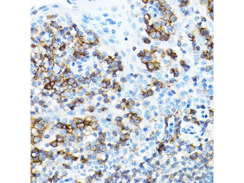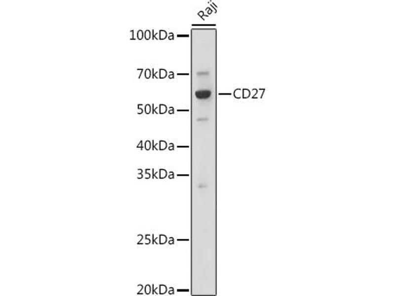 The protein encoded by this gene is a member of the TNF-receptor superfamily. This receptor is required for generation and long-term maintenance of T cell immunity. It binds to ligand CD70, and plays a key role in regulating B-cell activation and immunoglobulin synthesis. This receptor transduces signals that lead to the activation of NF-kappaB and MAPK8/JNK. Adaptor proteins TRAF2 and TRAF5 have been shown to mediate the signaling process of this receptor. CD27-binding protein (SIVA), a proapoptotic protein, can bind to this receptor and is thought to play an important role in the apoptosis induced by this receptor.,CD27,S152,S152. LPFS2,T14,TNFRSF7,Tp55,S152.LPFS2,Cancer,Tumor immunology,Cell Biology & Developmental Biology,Apoptosis,Immunology & Inflammation,CD markers,Cytokines,TNF,Cell Intrinsic Innate Immunity Signaling Pathway,Stem Cells,Hematopoietic Progenitors,CD27