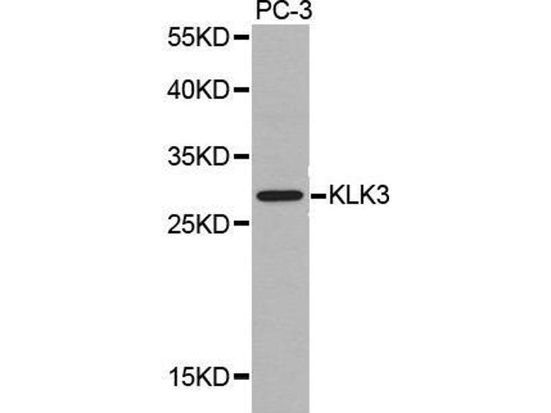Kallikreins are a subgroup of serine proteases having diverse physiological functions. Growing evidence suggests that many kallikreins are implicated in carcinogenesis and some have potential as novel cancer and other disease biomarkers. This gene is one of the fifteen kallikrein subfamily members located in a cluster on chromosome 19. Its protein product is a protease present in seminal plasma. It is thought to function normally in the liquefaction of seminal coagulum, presumably by hydrolysis of the high molecular mass seminal vesicle protein. Serum level of this protein, called PSA in the clinical setting, is useful in the diagnosis and monitoring of prostatic carcinoma. Alternate splicing of this gene generates several transcript variants encoding different isoforms.,KLK3,APS,KLK2A1,PSA,hK3,Cancer,Tumor immunology,Tumor-associated antigens,Tumor biomarkers,Signal Transduction,Cell Biology & Developmental Biology,Cell Adhesion,Cytoskeleton,Extracellular Matrix,Immunology & Inflammation,Neuroscience,Cell Type Marker,Cardiovascular,Angiogenesis,KLK3
