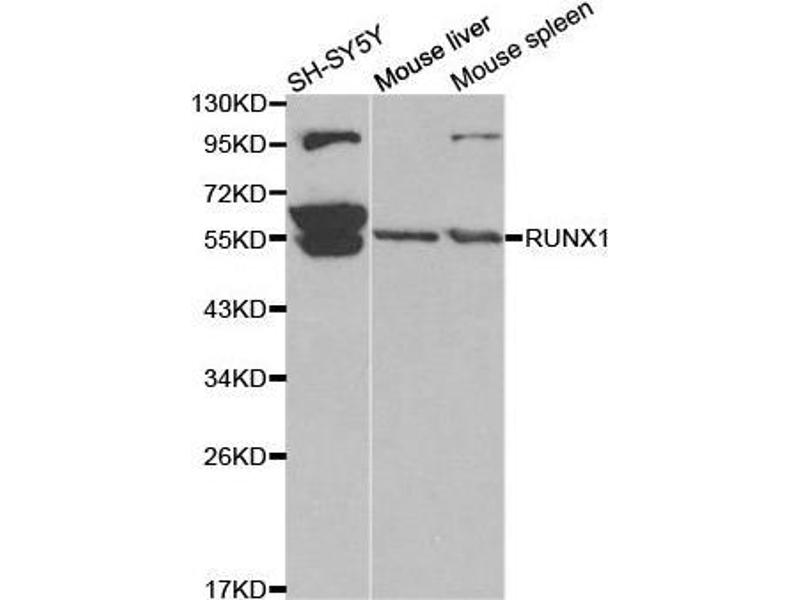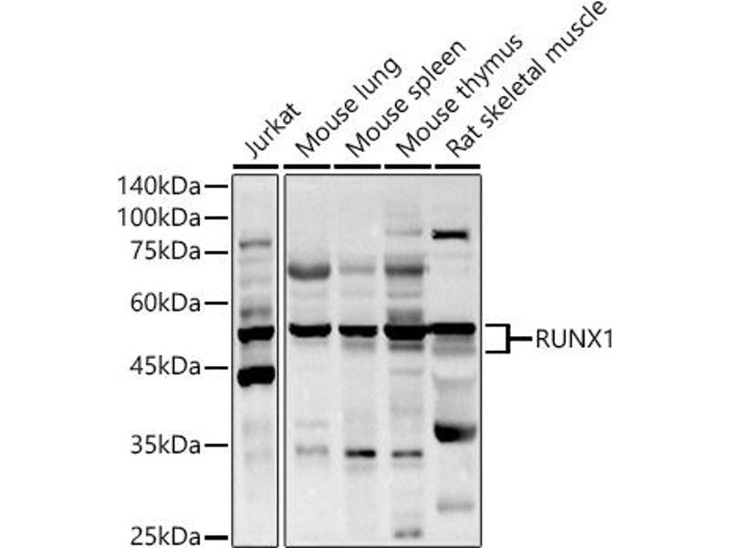 Core binding factor (CBF) is a heterodimeric transcription factor that binds to the core element of many enhancers and promoters. The protein encoded by this gene represents the alpha subunit of CBF and is thought to be involved in the development of normal hematopoiesis. Chromosomal translocations involving this gene are well-documented and have been associated with several types of leukemia. Three transcript variants encoding different isoforms have been found for this gene.,RUNX1,AML1,AML1-EVI-1,AMLCR1,CBF2alpha,CBFA2,EVI-1,PEBP2aB,PEBP2alpha,Epigenetics & Nuclear Signaling,Transcription Factors,Cancer,Cell Biology & Developmental Biology,Hippo Signaling Pathway,Neuroscience,Stem Cells,Hematopoietic Progenitors,Cardiovascular,Angiogenesis,RUNX1