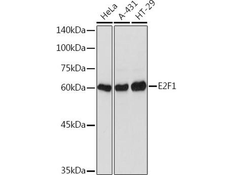 Der Kaninchen Polyklonal anti-E2F1 Antikörper (ABIN3022840) detektiert spezifisch E2F1 in WB und IF.