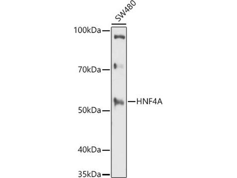 - The protein encoded by this gene is a nuclear transcription factor which binds DNA as a homodimer. The encoded protein controls the expression of several genes, including hepatocyte nuclear factor 1 alpha, a transcription factor which regulates the expression of several hepatic genes. This gene may play a role in development of the liver, kidney, and intestines. Mutations in this gene have been associated with monogenic autosomal dominant non-insulin-dependent diabetes mellitus type I. Alternative splicing of this gene results in multiple transcript variants encoding several different isoforms.,HNF4A,FRTS4,HNF4,HNF4a7,HNF4a8,HNF4a9,HNF4alpha,MODY,MODY1,NR2A1,NR2A21,TCF,TCF14,Epigenetics & Nuclear Signaling,Transcription Factors,Nuclear Receptor Signaling,Cancer,Signal Transduction,Cell Biology & Developmental Biology,Cell Adhesion,Wnt/β-Catenin Signaling Pathway,Endocrine & Metabolism,Lipid Metabolism,Cholesterol Metabolism,Cytochromes,AMPK Signaling Pathway,Endocrine and metabolic diseases,Diabetes,Stem Cells,Cardiovascular,Blood,Coagulation,Lipids,HNF4A