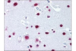 Immunoprecipitation. Immunoflourescence. Western blot. Immunohistochemistry on paraffin sections (5 μg/mL). Antigen retrieval: Steam slides in 0.01 M sodium citrate buffer, pH 6.0, at 99-100C for 20 min. Remove fromheat and let stand at room temperature in buffer for 20 min. Rinse in 1x TBS with Tween(TBST) for 1 min. at room temperature. Other applications not tested. Optimal dilutions are dependent on conditions and should be determined by the user.